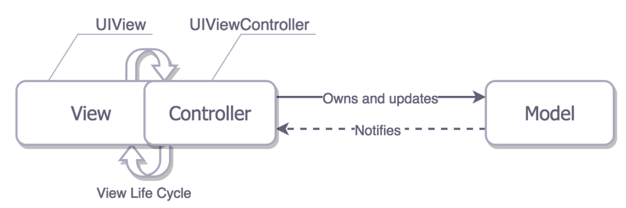 iOS 앱 개발 관점에서는 ViewController가 View의 LifeCycle과 깊게 연관되어 있어 View와 Controller의 책임을 나누기가 어렵습니다.