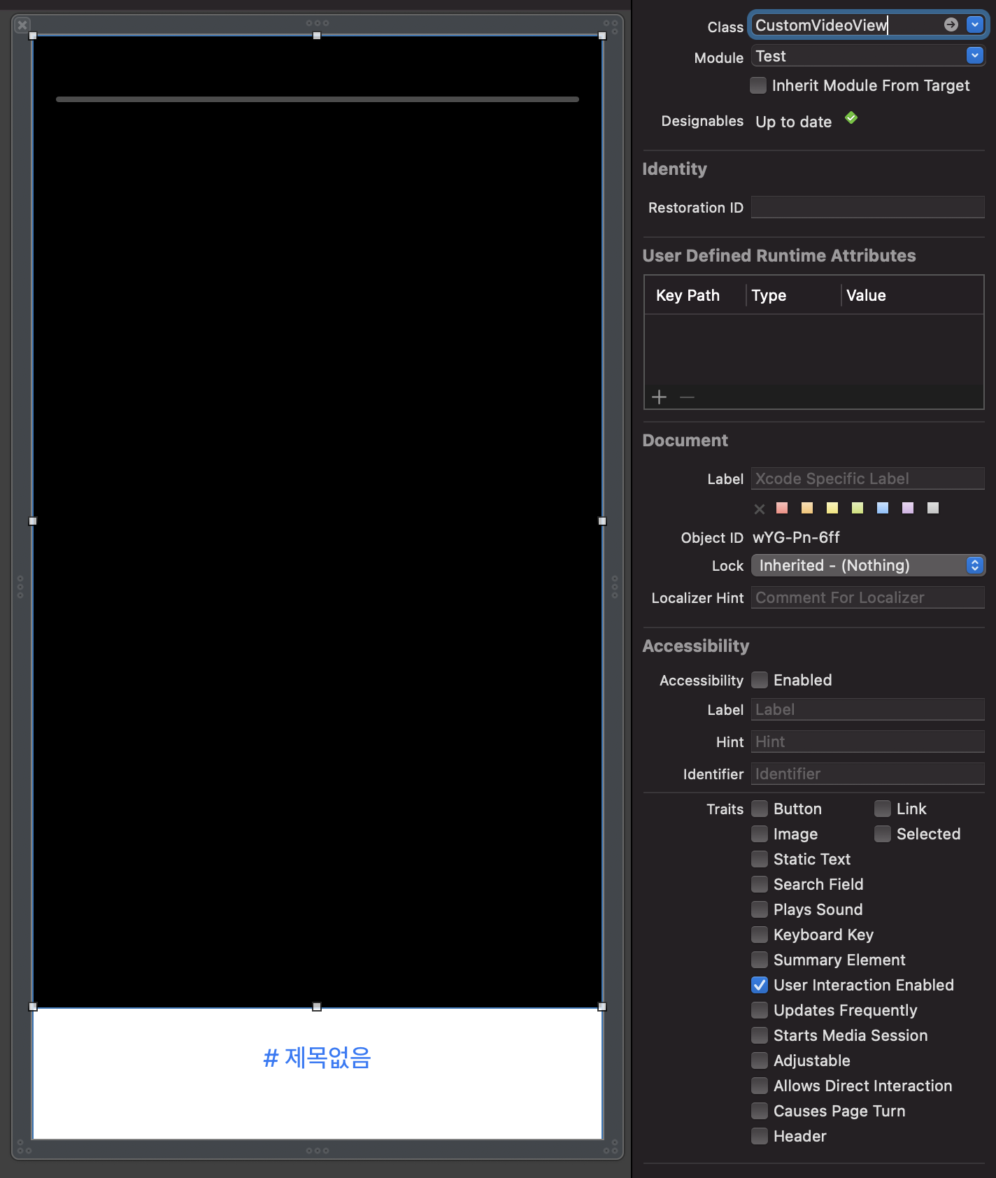 UIView에 class를 CustomVideoView로 지정해주고 지금부터 만들어보겠습니다.