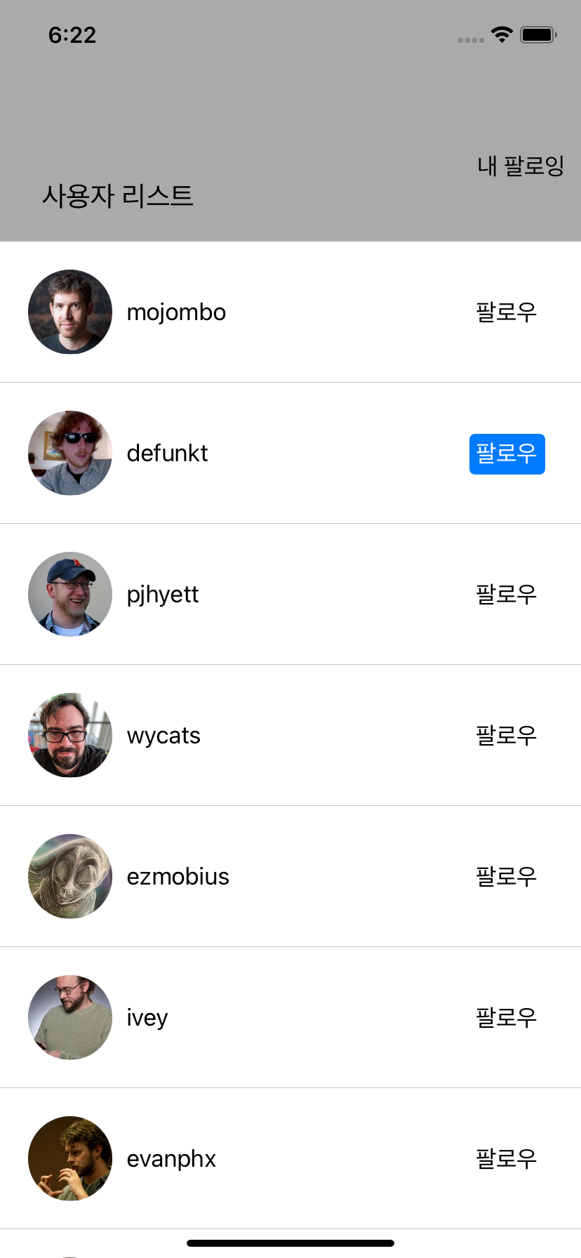 아래는 github 사용자리스트 api를 이용해 사용자 목록을 받아와서 테이블에 보여주는 앱입니다.
